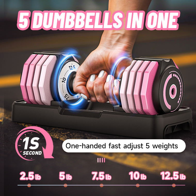 Adjustable Pink Dumbbells Set - 12.5LB*2