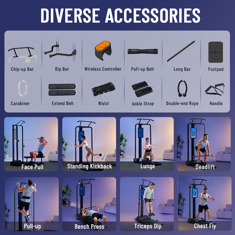Personalized fitness experience for both strength and cardio workouts with motor resistance up to 265 lbs for challenging sessions. 4 diverse modes to suit all ages and proficiency levels.